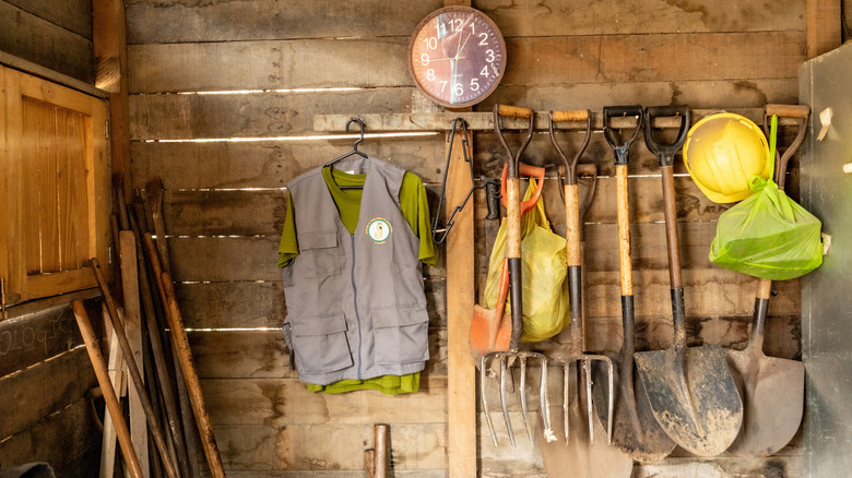 You'll find plenty more uses for tent poles if you put on your thinking cap. Brainstorming other objects that contain rods and posts is a good first step. See if you can reuse tent poles as hanging bars for hoses and tools in your garden shed. These poles also make durable rods for clothing hangers, which can help you store coveralls, drop cloths, tarps, and similar items that can live in the garage. Or upcycle two tent poles into a portable clothesline by joining them with a weatherproof string. Since most tent poles are made for outdoor use, a clothesline made from them can probably handle your patio or your laundry room. It's also a handy tool for airing out swimsuits, towels, and other wet items when camping.
