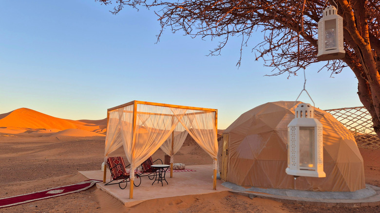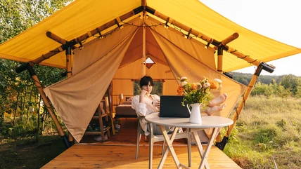 The heart of any visually stunning camping experience is your accommodation. A thoughtfully styled setup will elevate your trip from ordinary to Instagram-worthy. If you're pitching your own tent in the wilderness, a spacious glamping-style bell tent creates a luxurious, boho-inspired vibe with its high ceilings and roomy interior, while a compact foldable tent offers a more minimalist approach that's easy to transport and assemble. Both options can be transformed into a cozy retreat with a few well-chosen accessories to reflect your personal style. Bringing a few simple comforts, such as a throw blanket, a small rug, and some pillows can instantly add warmth and charm to your space.
