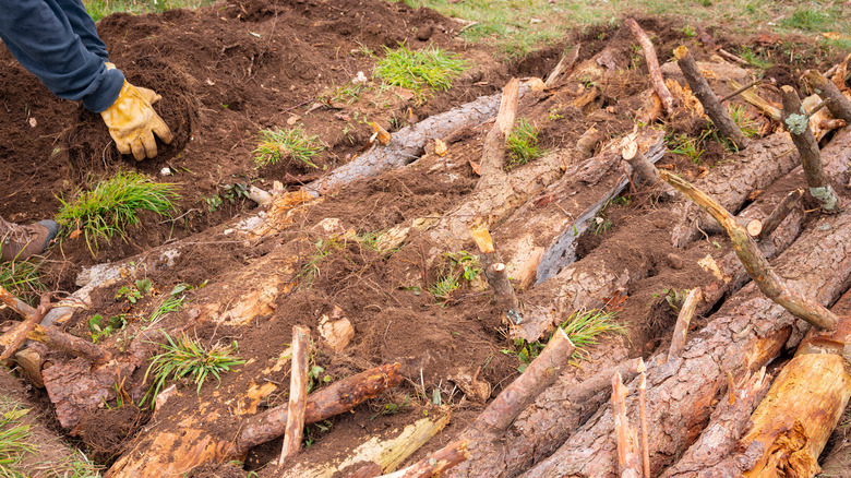 When it comes to making weed-pulling and vegetable harvesting easier, many gardeners find raised beds to be better than in-ground ones. There won't be many vegetables, however, if your raised bed's soil isn't up to snuff. Compost can improve your soil's structure and nutrient content, but bin-based compost needs to be mixed into the garden. A German gardening technique called hügelkultur can help you create high-quality soil right where you need it. As with composting, decomposition is involved, but you don't have to collect banana peels or coffee grounds. Instead, this process relies on tree stumps and other plant matter from your yard — for example, branches and leaves. You can even use rotting lumber. In fact, rotting wood is ideal for this approach.