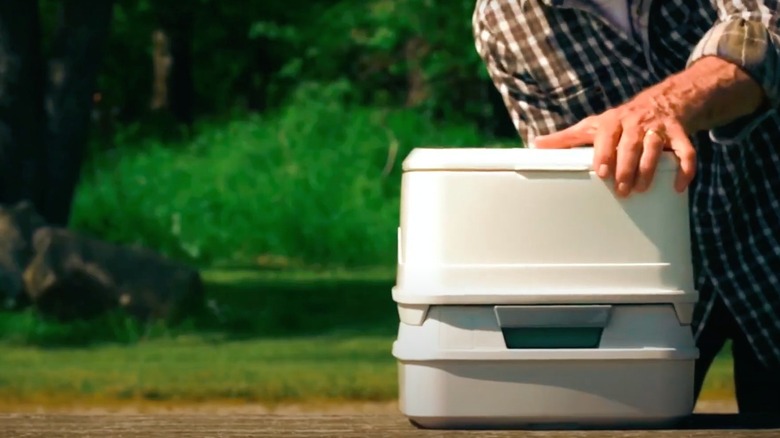 When you're packing to go camping, planning out where you're going to use the bathroom isn't always something you think about, but it can be a pretty complicated problem. Of course, you can just dig a hole and bury your waste, provided you know the essential tips for going to the bathroom in the wilderness, but you often have to pack it out as it can negatively impact the environment if done improperly. Also, sometimes it's just nicer to sit on a toilet rather than crouching above the ground. Some parks have public bathrooms, but there are little-known dangers of outhouses and porta-potties that may make you want to avoid using them as much as possible. However, you can't just grab any old portable toilet and go.