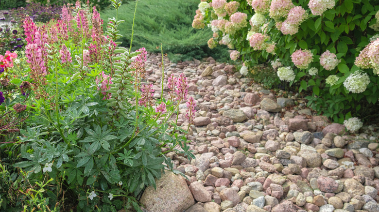 When shopping for stones, make sure you know the difference between gravel and crushed rock. Pieces of gravel have rounded edges, whereas pieces of crushed rock have sharp edges. Gravel is what you want when landscaping your yard. That's because crushed rock packs together so tightly that water may struggle to move through it. The spaces between the stones in a gravel pile allow water to drain, but they also give weeds places to grow. To keep your gravel weed-free, install landscape fabric beneath it. Be sure to budget for this expense, which can add up if you need to cover a large surface area. Laveve heavy-duty weed barrier landscape fabric is one highly rated option and comes in several sizes.