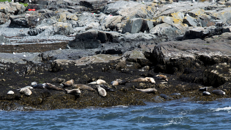 Nearly 60 miles of shoreline makes up a portion of Acadia National Park's boundaries. The portion of the North Atlantic Ocean that abuts the park is home to a variety of marine mammals. As a result, it is not uncommon to see both gray and harbor seals on the beaches of Acadia National Park. This is especially true during periods of low tide.