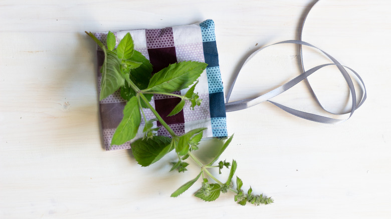 You don't have to plant mint in your garden to make use of its spider-deterring properties. If you want to repel spiders indoors, you can distribute dried mint leaves in spider-prone areas of your yard and home. Tuck mint-filled sachets or tea bags in cabinets and corners. Place sachets where spiders might enter your house, too. The leaves emanate a minty aroma that sends spiders a stern message.