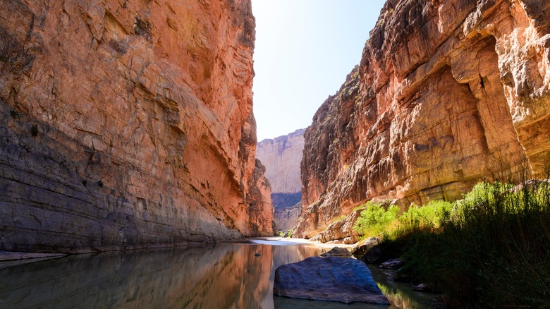Located in the isolated region of West Texas, Big Bend National Park encompasses the big bend in the Rio Grande River, which forms the international boundary between the U.S. and Mexico. Just as the Colorado River carved the Grand Canyon, so too has the Rio Grande sliced through the rock to form an impressive canyon. Santa Elena Canyon brackets the Rio Grande with sheer cliff walls rising as high as 1,500 feet above the water. This narrow, chute-like canyon is a popular overnight paddle for canoe and kayak enthusiasts and is one of the reasons Big Bend is considered among the best national parks for paddle sports.