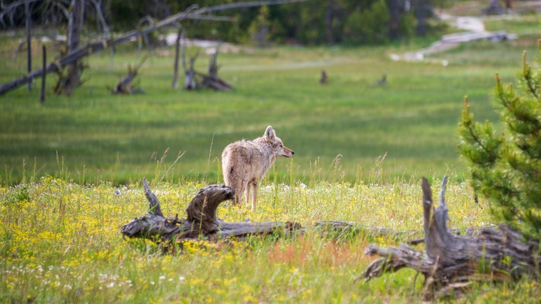 Given that grey wolves are considered to be the most dangerous type of wolf, it is a good idea to know what to do if you run into a wolf while adventuring in Yellowstone. Typically, following safe wildlife viewing protocol will keep you out of harm's way. However, if you unexpectedly encounter a wolf within close range or if one begins approaching you, stand tall, wave your arms above your head, and yell. You may also be able to scare the animal away by tossing rocks or sticks in its direction. If it should continue to approach aggressively, as a last resort, use bear spray to deter it.