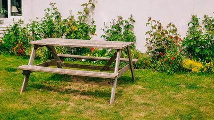 A simple way to refresh your yard is by repurposing old furniture. Got a worn-out picnic table? While on "TODAY," The Property Brothers suggested flipping it upside down and transforming it into a hammock stand. Just secure some support brackets made from two-by-fours, and you've got a sturdy, stylish setup. Want extra lounging space? Go for a double-wide hammock. It's a quick and affordable way to add a cozy relaxation spot to your yard. A fire pit is another great suggestion that requires minimal effort. Start by cutting out a space in your lawn, lay down some gravel to prevent the fire from spreading, and stack decorative stones around it. Drop in a fire ring — this one by Pleasant Hearth should do the trick. Add some decorative rocks and you're done. In just 20 minutes, you'll have a warm, inviting feature for your outdoor space.