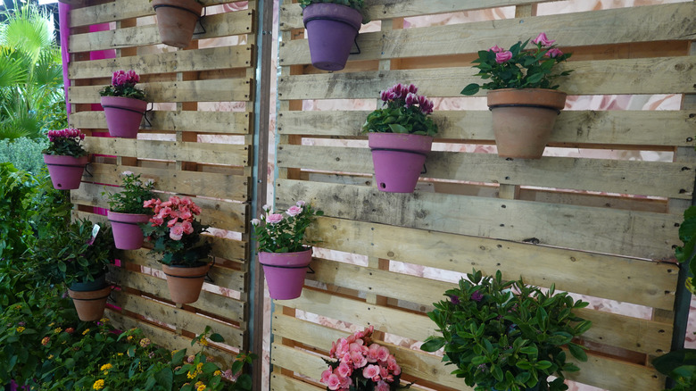 If you need to build one from scratch, you can use the same spare pallets, or other types of wood to create the wall or fence the plants will hang from. It's an easy, affordable way to bring some color and privacy to your backyard. They are also an excellent option for those who don't have a lot of space to work with.