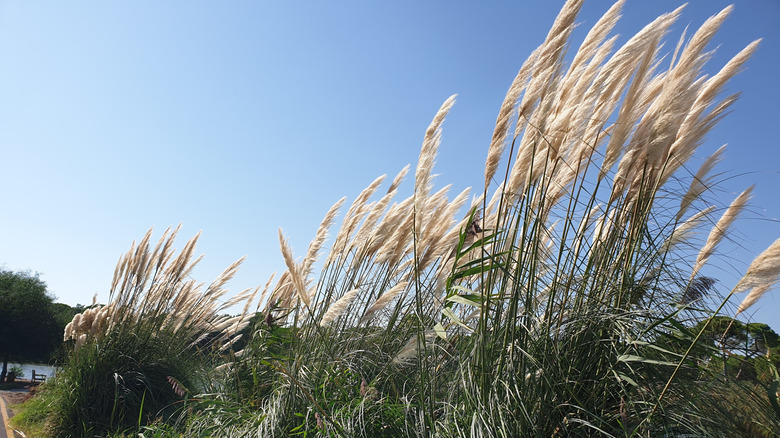 Most ornamental grasses average between 2 to 4 feet tall, with some varieties, like sun-loving pampas grass, growing in excess of 12 feet. This variety will work very well if you're looking for full-scale privacy. However, if you're looking for a grass that is somewhat less dramatic, then something like switchgrass, feather reeds, or pink muhly grass (which is highly adaptable to various soils) will add just enough height to yield privacy without being overbearing.