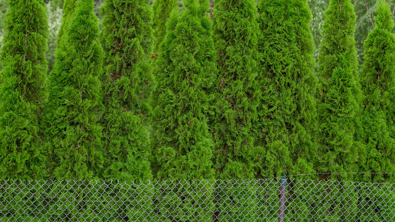 When it comes to hedges that provide privacy, nothing beats an arborvitae. These fast-growing members of the cypress family can grow enormously tall depending on the variety. American arborvitae is the most common in the United States. It can grow between 40 to 60 feet tall when fully matured, and have a spread of up to 15 feet. So, make sure you measure out your borders before you buy and plant arborvitae. You don't need many to create sufficient privacy.