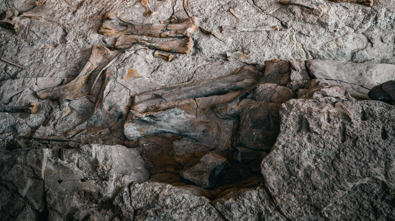 There are a couple of ways to view fossils in Dinosaur Valley National Monument. The easiest involves visiting the park's museum at the Quarry Exhibit Hall. Central to the museum is a rock wall containing about 1,500 dinosaur bones, known as the Quarry Wall. These bones come from more than half a dozen species of dinosaurs dating back 150 million years. The museum also has a number of displays featuring fossil bones which have been collected from the surrounding area. From the Quarry Visitor's Center, those wishing to visit the museum can either hike or use the park's shuttle service to access the exhibit hall.