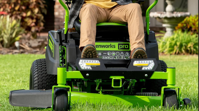 One major benefit of this Yardforce LFP Riding Mower is the cost. While the Greenworks options are about $5,000, this Yardworks model costs $3,500. The main reason for the price difference is that it's missing some features, like zero-turn capabilities. It may sound like a bit of a downgrade, but it's a great way to save yourself money if you don't actually need that feature. In fact, paying for fancy — but unnecessary — features is one of the common mistakes to stop when buying a lawn mower. This mower does come with plenty of useful elements and qualities, including a quiet engine, LED headlights, and the ability to mow up to 2.5 acres when fully charged.