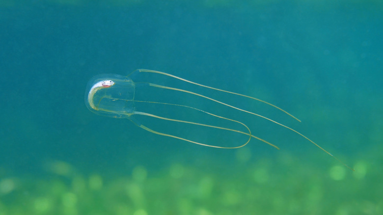 There are venomous animals in ocean waters all over the world. So, it should come as no surprise that there are dangerous creatures to beware of when swimming at Florida's gorgeous beaches. Several dangerous types of jellyfish are among them, as Florida is home to a wide variety of jellies, along with closely related creatures such as Portuguese man-o-war. What may raise some eyebrows is that some of the most painful stings are delivered by a small, hard-to-see animal you'll want to try and avoid — the box jellyfish.