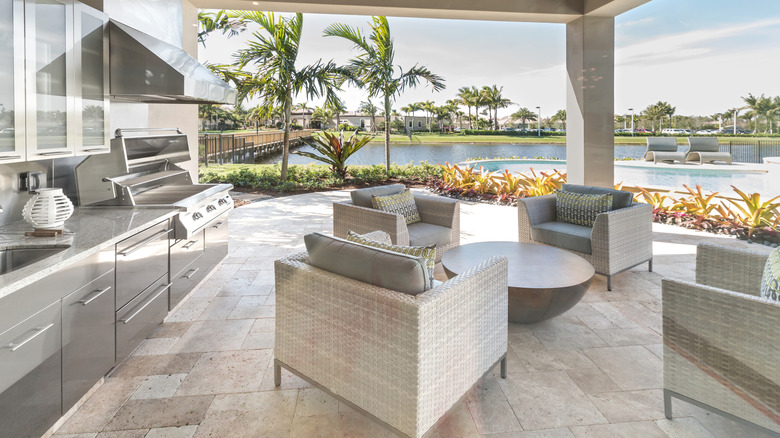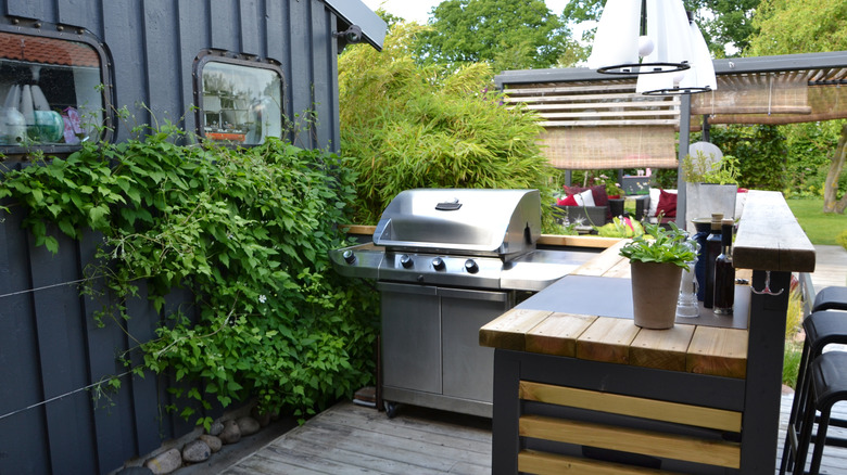 If you are planning to build your outdoor kitchen closer to your home or any overhanging structures, you need to make sure there is proper clearance between said structures and your grill. "Outdoor kitchens should be carefully thought out in order for all the equipment to be fully operable without adding risk of fire or smoke penetration in unwanted areas," says Machado. Fire and smoke can do significant damage to property. So, do not overlook this crucial step in your outdoor kitchen design.