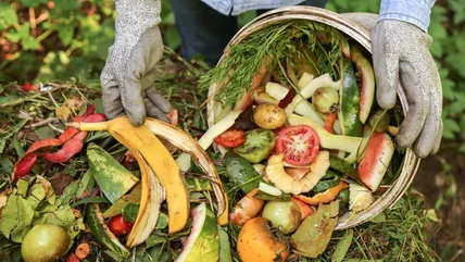 Want to feed a tree with underground compost? Put composting holes just beyond its dripline, which is the furthest spot that water droplets from its canopy hit the ground. As the materials in the hole break down, the tree's roots will use the resulting nutrients. You can fill these holes with banana peels and other compostables for your garden throughout the year. Dig holes before the ground freezes if you live in a cold area. No matter which trenching approach you use, cut kitchen scraps into small pieces so they'll break down faster, water the trench regularly, and label your holes and trenches so you don't disrupt the decomposition process.