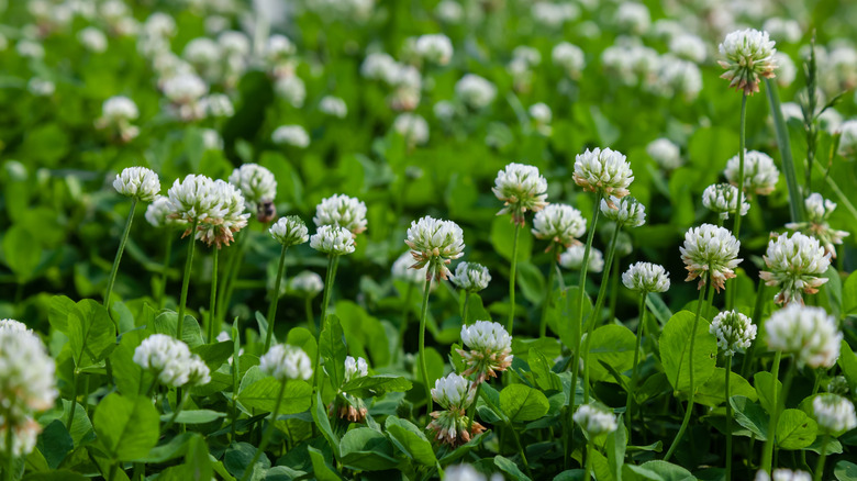 Dutch clover's benefit list keeps going. This ground cover grows and spreads rapidly when planted in the spring, accepting the clay-laden soil and partially shady areas that many other plants won't tolerate. Because Dutch clover is a perennial, it will return to your yard each spring. Once established, it suppresses weed growth and enriches the soil with nitrogen, fostering a healthy growing environment for a host of plants. It thrives in USDA hardiness zones 3 through 10, which cover most of the United States. It even has a knack for loosening compacted earth. This means that less frequent lawn aeration may be in your future. Dutch clover also attracts pollinators and helpful insects that eat aphids and other pests. Sometimes called white clover, Dutch clover is known for its small white blossoms and three-part leaves. It may occasionally produce a four-part leaf to make you feel lucky.