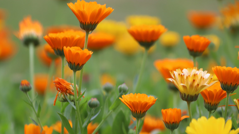 Pot marigolds aren't particularly disease prone, but they can sometimes suffer from powdery mildew or cucumber mosaic virus (CMV). Powdery mildew looks like a white powder, while CMV can cause misshapen foliage and a distinctive yellow-and-green pattern on leaves. Both of these diseases can impede plant growth. Luckily, growing pot marigolds in sunny spots with plenty of airflow can discourage powdery mildew from forming in the first place. For CMV, disinfecting your gardening supplies and disposing of infected plants are two of the best ways to combat the disease. Perhaps surprisingly, WD-40 can be good at removing dirt from your garden tools, but you'll also need rubbing alcohol, a 10% bleach solution, or even Lysol all-purpose cleaner spray to eliminate pathogens.