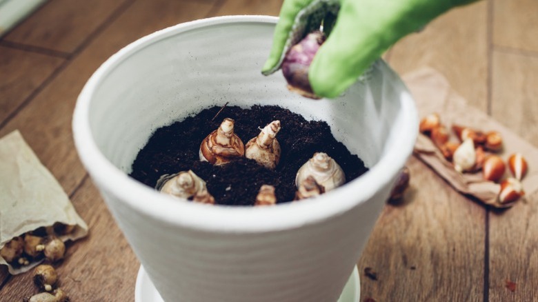 Hyacinth bulbs are a hardy bulb that should be planted in the ground outside in fall. Depending on the variety, you might need to plant your bulbs at different depths. Not every flower bulb should be planted at the same depth or you will likely not have some flowers sprout in the spring. Hyacinths typically are planted four inches to six inches deep, with the pointy end of the bulb facing up. Smaller bulbs should be planted slightly higher.