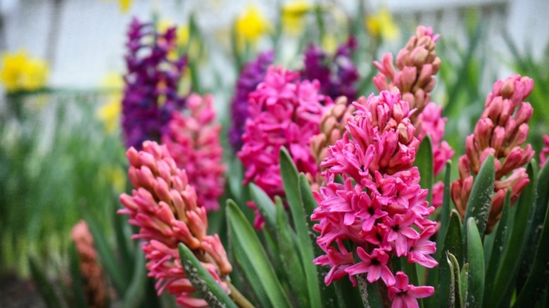 Hyacinths (Hyacinthus orientalis), also known as common or Dutch hyacinths, are perennial flowers grown from a tunicate bulb. These delicate and delightful blooms are a popular garden addition thanks to the variety of colors available from different cultivars, including white, yellow, and purple. Hyacinths are also a favorite option for indoor containers, often through a process forcing winter blossoms. Gardeners love to populate their spaces with hyacinths to take advantage of their sweet fragrance, which attracts bees. When you follow the proper care tips, like planting under the right conditions, not overwatering, and carefully propagating your bulbs, you can also find success with hyacinths.