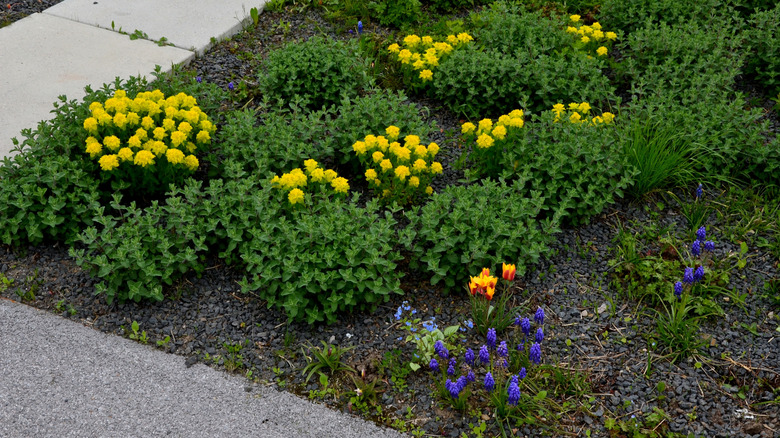 You can also use ground cover plants to suppress weeds instead of mulch. The advantage of utilizing ground cover is it not only keeps weeds under control, but also increases the biodiversity of your yard, attracting beneficial insects. Ground cover can also be used to add texture and color to your lawn and garden. About the only drawback to utilizing ground cover instead of mulch is it does require some maintenance and upkeep. However, if you don't mind spending the time, it is a great way to get the benefits of mulch without the potential problems.