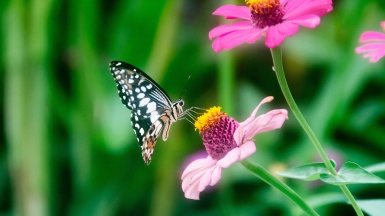 A study from the University of Kentucky College of Agriculture highlighted the ability of zinnias to attract butterflies. Researchers were able to pinpoint the most successful cultivar gardeners can add to their gardens — 'Lilliput'. This cultivar grows fairly tall with flowers described as "pom-pom" like. Whether you choose to grow 'Lilliput' or not, focus on certain colors that butterflies visit often, like yellow, pink, red, purple, and white. Plus, growing these types of zinnias is a great tip to make all the bees come buzzing to your garden, along with other pollinators.