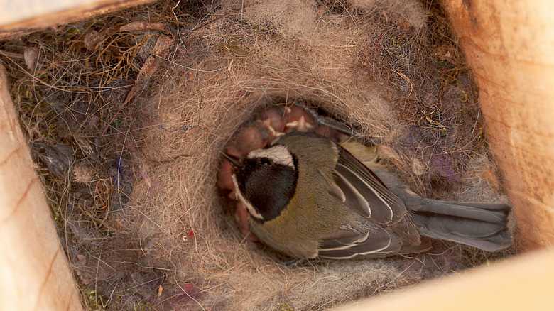 Cleaning your birdhouse each year is important to remove pests and soiled nesting materials, and it can also be fun to see what the nest looks like after the family has vacated. Be sure to add a removable top or hinged roof to your birdhouse to allow easy access. After the babies have fledged each year, you'll want to be able to open up your nest box fully to remove all the old materials. You can follow this with a good scrubbing with simple boiling water. You might want to take your nest box down for the winter and store it inside until next nesting season in order to preserve your DIY masterpiece.