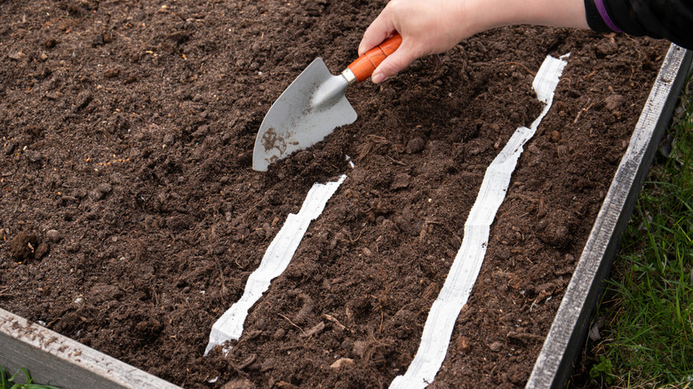 When you get ready to make seed tape, mix 1 tablespoon of cornstarch and cup of water in a saucepan. Bring it to a boil. Transfer the cooled concoction to a squeeze bottle. At this point, you can also add a bit of food coloring if you wish to better be able to see where your seeds are on the strip. Then, cut a few paper towels into 1-inch strips. Put dots of the cornstarch/water mix along the edges of the paper towel strip at the distance suggested on the seed packet. Place seeds on top of each dot, then fold the paper strip to cover the seeds. With this method, you can easily create multiple strips if you are sowing companion plants in your garden.