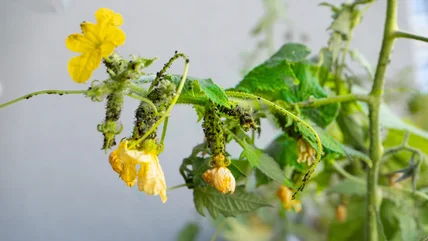 Feverfew's two-pronged assault on aphids can help safeguard a wide range of plants. In vegetable gardens, aphids are drawn to pumpkins, cucumbers, potatoes, tomatoes, and a host of leafy greens. In flower beds, they're likely to target roses and sunflowers. They're big fans of fruit trees, too. Aphid damage isn't limited to sap extraction, either. According to horticulture experts at the University of Wisconsin-Madison's Division of Extension, some types of aphids transmit potato virus Y, which can significantly damage not only potatoes but peppers, tomatoes, and landscaping plants. Aphids also spread mosaic viruses that strike cauliflower, cucumbers, lettuce, and turnips, as well as pathogens that hinder the development of melons, squash, beans, and other crops.