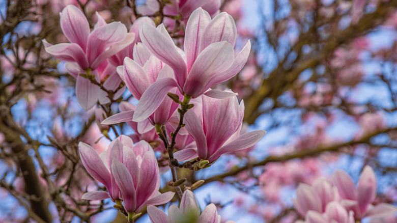 Some plants give spring such a fabulous welcome that they're known for ushering in the season. Examples include snowdrops, crocuses, daffodils, and other spring-blooming bulbs that thrive when planted in the fall. In the trees and shrubs category, magnolias may win the prize for most glorious greeting. Deciduous varieties of this tree open their large-petaled flowers in early spring, filling neighborhoods with bursts of pink and white. You may also see magnolias with yellow or violet blossoms. Magnolia flowers tend to assume graceful shapes that boost your yard's visual appeal while attracting bees to your garden. They're also a magnet for songbirds and nectar-seeking hummingbirds.