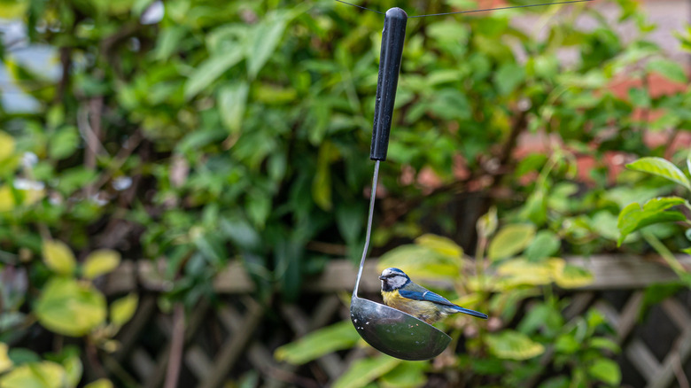 Turning a soup ladle into a bird feeder