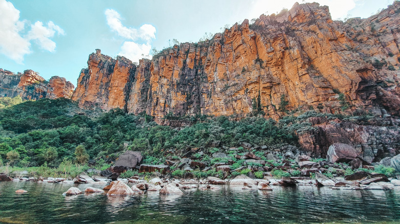 Kakadu is home to miles of rivers and streams, lakes, and coastal estuaries. While taking a dip in these waters may sound like an inviting way to escape the heat, doing so can be dangerous. Beyond the animals which live in the park's waterways, the rivers and streams often have dangerous currents and submerged structures such as trees that can entangle swimmers. They are also prone to flash flooding when it rains. Additionally, some of these waters are extremely cold. The contrast of temperatures between the air and water has led to cases of shock when overheated individuals took a plunge into the chilly waters.
