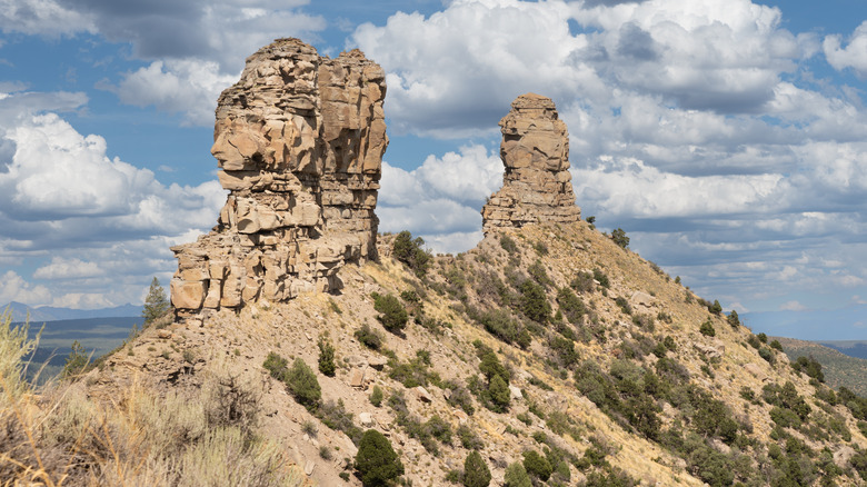 In the San Juan National Forest of southwest Colorado, just outside Pagosa Springs, you'll find Chimney Rock National Monument. Established in 2012, this is one of the newest national monuments, sporting a beautiful modern visitor center and a series of informative interpretive signs along its trails. This magical spot, about two hours east of Mesa Verde, highlights the intricate stone foundations of houses and gathering places of an ancient community of Ancestral Puebloans who lived there thousands of years ago. Two sandstone spires rise above this area, and are thought to have been revered by ancient peoples for how they frame an astronomical event known as a Major Lunar Standstill every 18.6 years. Despite these attractions, only about 12,000 visitors go to Chimney Rock each year, a tiny fraction of the number of folks visiting other national parks and monuments in Colorado like Rocky Mountain National Park and Dinosaur National Monument, where you can hike or drive to fossils and petroglyphs. With so few visitors, you'll have plenty of space for quiet contemplation of how ancient cultures thrived in this harsh, high-desert landscape.