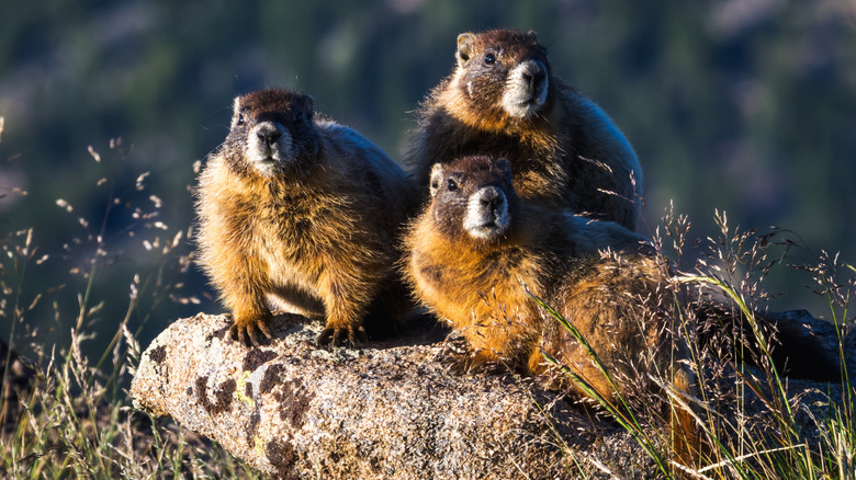 When hiking at high altitude, you may be able to get quite close to these chubby rodents who look like a cross between a groundhog and a beaver, and conduct their business relatively unbothered by human visitors in popular hiking areas. There are several species of marmots in the western mountain ranges of the U.S., the most ubiquitous being the yellow-bellied marmot (Marmota flaviventris) of the Rocky Mountains and Sierra Nevada, and the hoary marmot (Marmota caligata) of the Cascade range and talus slopes of Alaska's high peaks. A sub-species only found in the Olympic Mountains of Washington is the Olympic marmot (Marmota olympus), characterized by its long, bushy tail. Flourishing in colonies of up to 40 family members, you'll find these cute, gregarious critters with cheeks full of grass and moss during summer months as they put on the pounds for a long winter hibernation.
