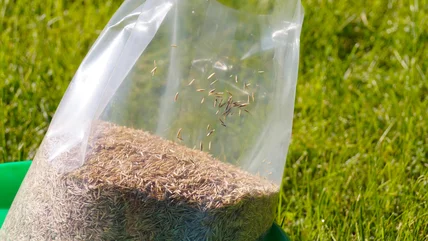 If stored in dry conditions out of direct sunlight and extreme heat, cool-season grass seed such as fescue and Kentucky bluegrass can last for up to five years. In many cases, however, grass seed tends to become less viable within a couple years, so some of it may germinate while some does not, leading to an uneven lawn. A simple way to test the seed is to throw a handful in a bucket of water: If most of the seeds sink, they're probably still good. If most float, they may no longer germinate. For a more elaborate test, place 10 or so seeds on a damp paper towel, fold it up, put it in a plastic bag, and set it in a sunny location. Check the seeds after five to seven days; if all but three seeds sprout, the seed is 70 percent viable, which is fairly good. If none sprout, the seeds will no longer germinate, which means they're no longer useful during the best time for overseeding the lawn.