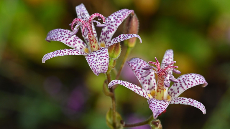 Having hummingbirds in your yard is more than just for birdwatching enjoyment — they are very beneficial to your garden and yard as well. Hummingbirds are great pollinators, and they also help control some of the bug population due to their high-needs feeding habits. By planting flowers such as toad lilies, you're left with a mutually beneficial arrangement.