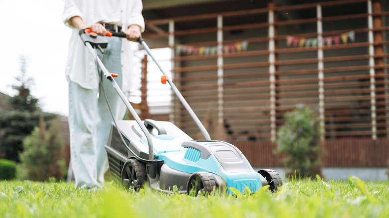 As the name suggests, push mowers only move if you move them. Whether that's across your yard or up a hill, they rely on your force. However, because there's no additional drive system or any extra mechanics for self-propelling, push mowers tend to be lighter in design than self-propelled lawn mowers, as well as easier to maneuver. Without the additional mechanics, push mowers may also have fewer maintenance requirements than self-propelled mowers, depending on the model. Push mowers may be a better choice for individuals with small, flat yards and limited storage space. Lawn care beginners, such as first-time homeowners, may also prefer push mowers over self-propelled lawn mowers because of these factors, as the lack of a driving system lends to straightforward cutting with no extra bells and whistles to figure out.