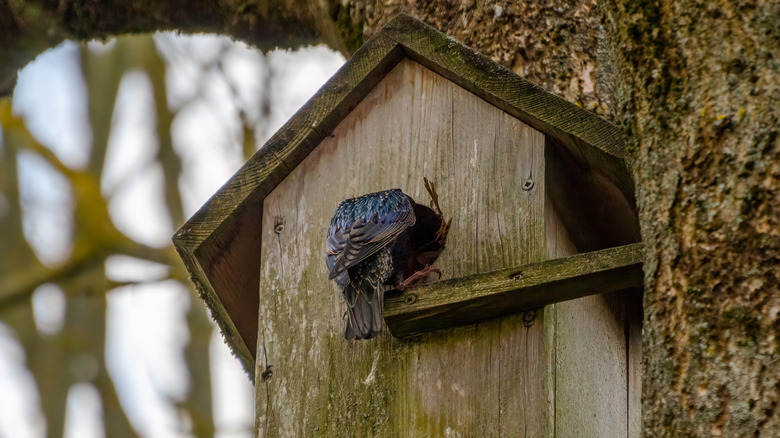 After doing research on the perfect size birdhouse for your yard and the best materials, you've finally purchased — or DIYed — a beautiful abode for your feathered friends. Getting your hands on a birdhouse is only half of the equation: Now you have to find the right place to hang it up. Different species of birds prefer to nest in different spots, and your birdhouse's location plays a large role in which birds you'll attract. Thankfully, with this handy DIY that uses a shovel, you can create a mobile birdhouse that can be placed wherever it's needed.