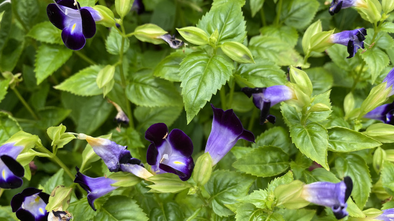 To grow your own wishbone flowers, you can choose to start with seeds or adult plants. Starting with seeds takes extra elbow grease, but it's still a beginner-friendly process. It's important to note, however, that the trailing variety doesn't produce seeds, so you'll be planting adult plants. While these flowers aren't fussy about light, giving them the right soil can be the difference between half-hearted blooms and hanging baskets overflowing with two-toned flowers. Wishbones do best in well-draining soil with plenty of nutrients. With that in mind, you should aim to add fertilizer to your wishbones every few weeks during their growing months. Over-fertilizing is still a risk, however. So use a slow-release version and keep an eye out for the signs of too much fertilizer, like leaves turning yellow, adjusting your routine as needed.