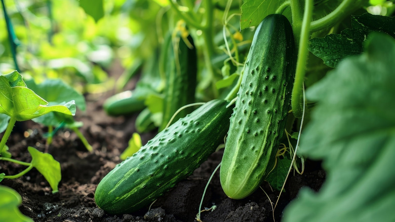 Melons and cucumbers are also problematic partners because they tend to fight each other for sunlight and water. The same goes for nutrients, as both are heavy feeders. When your soil isn't fertile enough, these plants will make fewer cucumbers and melons. Plus, they may develop problems such as blossom end rot, which is linked to calcium shortages. Even if a soil test shows that your garden is rich in nutrients at the start of the growing season, planting multiple heavy feeders in the same spot can deplete these resources quickly, increasing how much fertilizer your garden needs.
