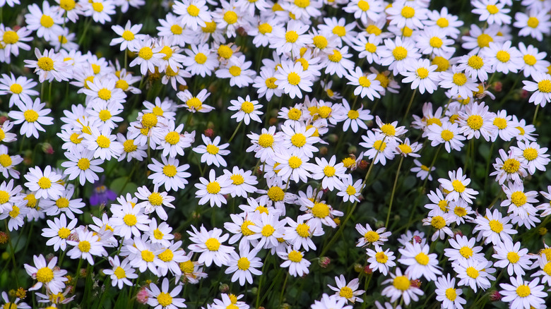 Miniature daisy performs best when it's planted during warm spring weather. The air temperature should stay above 50 degrees Fahrenheit at night and rise to 70 degrees or so during the day. Though miniature daisy is not a particularly thirsty plant, it grows fast and strong if it's watered every few days, ultimately reaching a height of 2 to 4 inches. To create a ground cover with miniature daisies, place individual specimens about a foot apart and let them reseed so you don't have to plant more the following year. Choose soil that drains well since daisies are prone to rot when their roots sit in stagnant water.