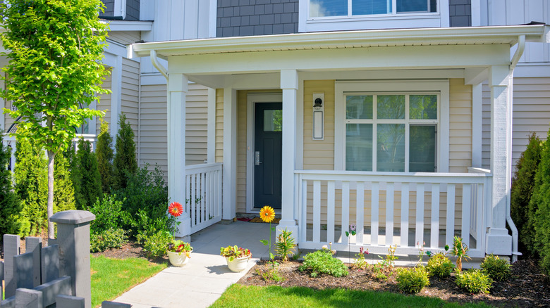 Privacy is one update that will add value to your home. To begin your porch screen, measure the height between your porch floor or railing and the ceiling. Cut vertical support boards to length. Next, attach one vertical board to the end of your porch against your house. Be sure the board is plumb before attaching it. Then attach another near the post at the end of the porch where you want the privacy wall to extend to. Measure the distance from the edge closest to the house to the edge farthest from the house to determine your slat length. Cut your slats to size. Attach the first plank, starting from the bottom and working your way up. This will make it easier to use the spacer.