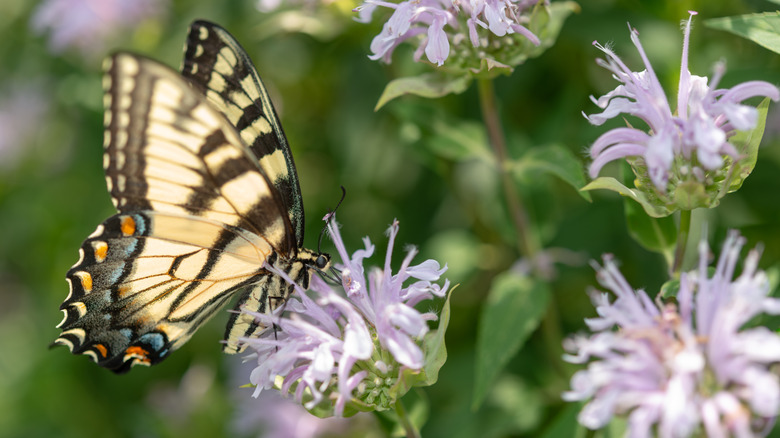 The cone-shaped blossoms are where the nectar and pollen sit drawing a wide range of skippers, sulfurs, monarchs, and hairstreaks. Bee balms is a particular favorite of the eastern tiger swallowtail who absolutely love them for their vibrant colors, sweet smell, and excellent nectar. Bee balm prefers sunshine over shade, and likes rich, well-drained soil with a neutral pH in order to grow at its best. You'll also find bee balm to be hugely attractive to hummingbirds, which is another reason to plant them.