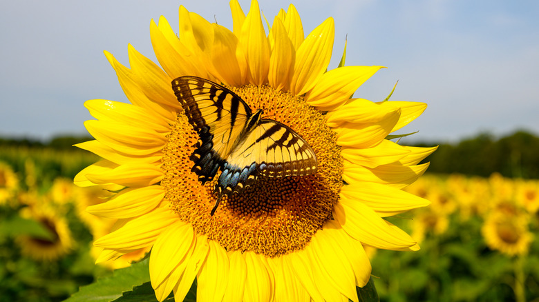 As it turns out, butterflies love sunflowers as much as people do. Growing to absolutely enormous sizes and coming in a variety of different bright colors, sunflowers have to be among the most popular flowers grown in the United States. They make a statement and bring huge amounts of brightness to any yard. And they have one big benefit for anyone who really wants to attract butterflies to their yard, because sunflowers are one of the best at attracting monarchs.