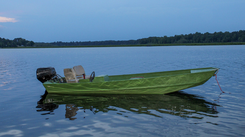 Jon boats can be paired with a tiller engine, or made into either a side or center console. Various deck and seating configurations are possible. Aluminum boats tend to be relatively light, don't require much horsepower, and usually run fairly shallow. They are especially good choices for running in areas that are strewn with hull-eating obstructions such as oyster reefs and rock piles. If they do end up punctured, aluminum boats are also easily patched or fixed.