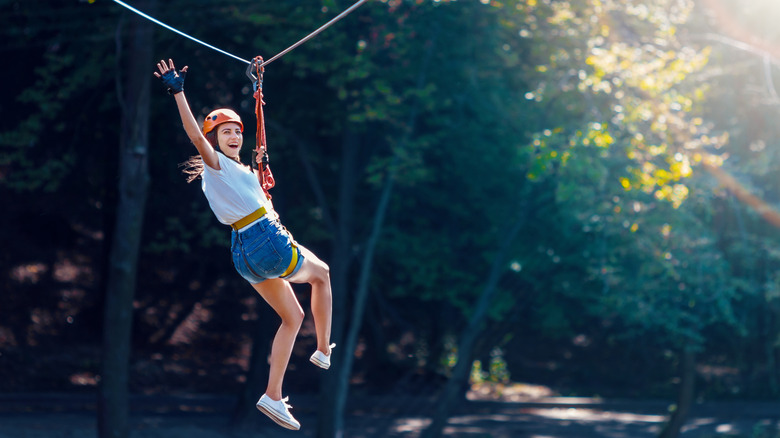 To heighten the suspense, each course gets higher and more challenging as you move through it. The end of the children's course is 15 feet above the ground, whereas the adult courses start at this height and climb another 55 feet. A harness helps keep you safe as you navigate the treetop obstacles. After signing up for an adventure park experience, you'll need to go through a 20-minute training that shows you how to use the equipment and pairs you with a course guide who can answer your questions.