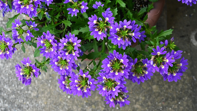 Ever the overachiever, fan flower is chasing a second title as well: "most blossoms in one growing season." This summer bloomer explodes with flowers until frost hits in the fall, offering an over-the-top display even on the hottest days of the year. Stagnant water is the main issue that might keep it from showing off. That's because fan flower dislikes water pooling around its roots, a situation that encourages rot. Make sure its soil drains excess liquid effectively. If the growing site you're preparing contains clay, mix in some compost to prevent water buildup.