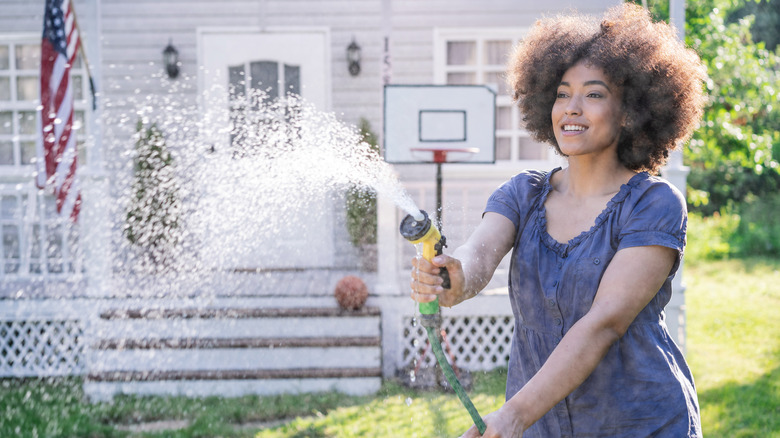 Once your summer-seeded lawn reaches about 2 inches, you can mow. Just remember to never remove more than one-third of its height at once. Use a sharp mower blade and mow in the cooler hours to reduce stress. Apply fertilizer about three to four weeks following germination. Skip weed killers for now, since many herbicides are too harsh for new grass in summer. Instead, focus on deep watering every few days once roots are established. This trains your grass roots to grow deeper, helping your lawn survive heat and drought.