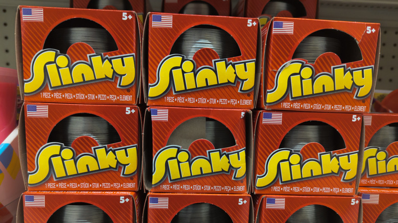 These helical carbon steel springs were invented by a naval mechanical engineer named Richard T. James in 1943. A few years later, the toy had its grand debut at Philadelphia's Gimbels Department Store, soon becoming an international best seller. The same physical properties that allow Slinkys to walk down steps also help them deter squirrels. it's worth noting this trick works best with shepherd's hook or other pole-mounted feeders.