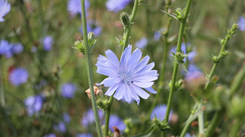 Sometimes called coffeeweed or blue sailors, chicory (Cichorium intybus) is a flowering perennial that often makes its home beside streets and railroad tracks. It sometimes sprouts from lawns, too. Chicory's blossoms are usually light blue, but the petals can also be pink or white. Bees and butterflies like its nectar, and other plants love the potassium, calcium, and vitamin A it brings to fertilizer tea. In addition to helping new leaves and root tips form, calcium plays a role in building sturdy cell walls, growing strong roots, and warding off withering after plants reach maturity.