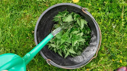 When you touch a stinging nettle, the prickly hairs on its leaves and stems may make your hands burn for a few minutes. For this reason, it's wise to wear gloves when handling it. It's a small inconvenience considering the many perks this plant brings to your fertilizer tea. In addition to supplying nitrogen, phosphorous, potassium, calcium, magnesium, boron, and several other important nutrients, stinging nettle tea can ward off problem-causing bugs and fungi when spritzed on the plants in your garden.