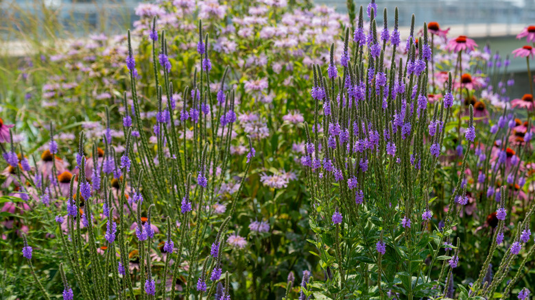 One of the most popular features of hoary vervain is that it is self-seeding, which means once you plant it, it comes back every year on its own without having to be replanted. This is always a great feature for gardeners that don't want the extra work each year. If you don't want the flower to self-seed, remove the spent flowering spikes before the seeds reach maturity, a process known as deadheading. Another feature that pollinators like hummingbirds, butterflies, and bees love about the plant is the long bloom time, which runs about 4-6 weeks in July and August.